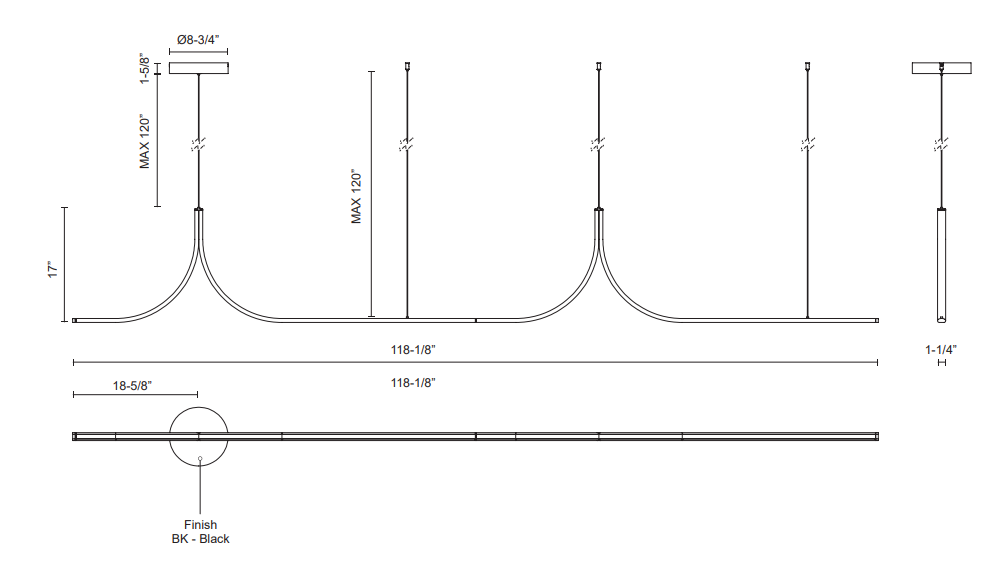 - Dimensions 118.25”L x 1.25”W x 17”H