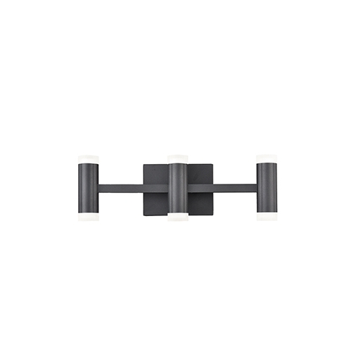 Elegant LED vanity with rectangular frosted glass with fine clear edges; polished chrome metal details with two metal bands which extend across the glass. Can be mounted horizontal or vertical.